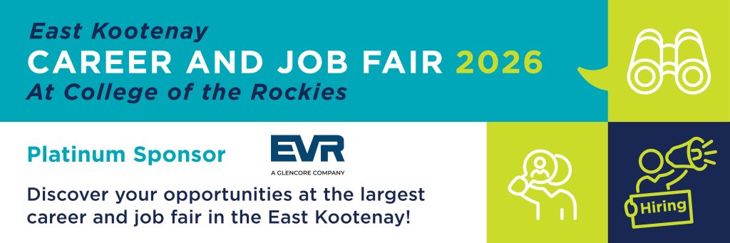 The annual East Kootenay Career and Job Fair will be held on Wednesday, March 4, 2026 from 10:00am – 3:00pm inside the Cranbrook Campus Gymnasium. This event attracts a dynamic mix of employers and non-profit organizations from the local community, throughout the region, and across Canada.