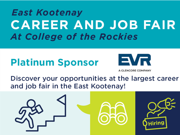 The annual East Kootenay Career and Job Fair will be held on Wednesday, March 4, 2026 from 10:00 am – 3:00 pm inside the Cranbrook Campus Gymnasium.