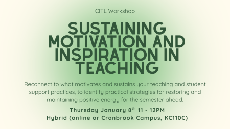 Kick off 2026 with a CITL workshop focused on reconnecting with the motivations that sustain your teaching and student support practices. We will combine self-expertise with instructor wellness literature to identify and practice practical strategies for restoring and maintaining your energy as you enter into the semester ahead.